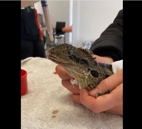In the video you can see Dr Vanessa giving Chuck his antibiotics mixed with some yummy food via a syringe. He was a little confused at first but did seem to enjoy it!